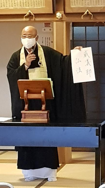 多聞会が始まりました。コロナ対策で方丈様はマスクをしてお話されています